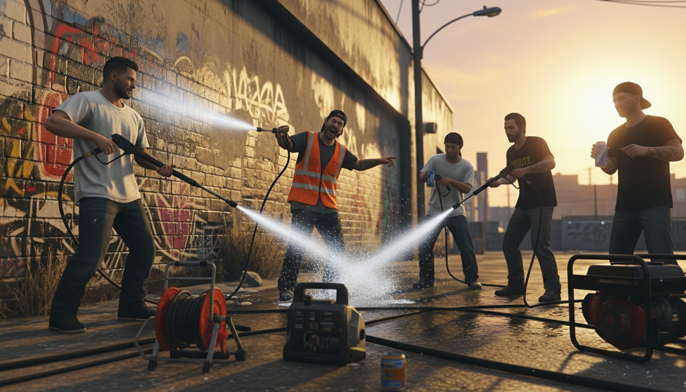 Highly comprehensive pressure washing script with multiplayer crew sync, water management, custom admin contract creator, and multiple upgrades.